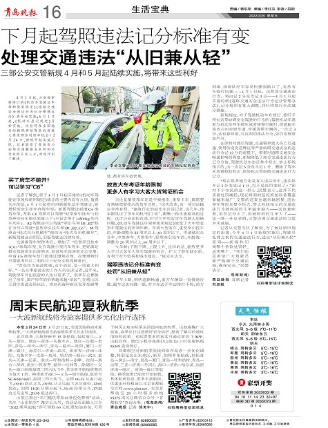4月1日起,公安部新制修订的《机动车驾驶证申领和使用规定》《道路交通安全违法行为记分管理办法》将开始实施;5月1日起,《机动车登记规定》开始实施。这些将在全国施行的新规将给青岛的驾驶人带来哪些利好和机会?3月24日,新规开始实施之际,记者联系了青岛市公安局交通警察支队和相关行业的从业人士,对此作出了解读。