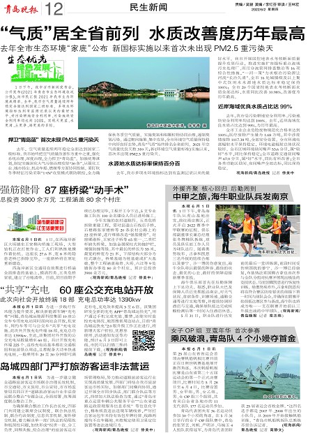 “气质”居全省前列 水质改善度历年最高强筋健骨 87座桥梁“动手术”“共享”充电 60座公交充电站开放岛城四部门严打旅游客运非法营运中甲之旅,海牛职业队兵发南京乘风破浪,青岛队4个小嫚夺首金