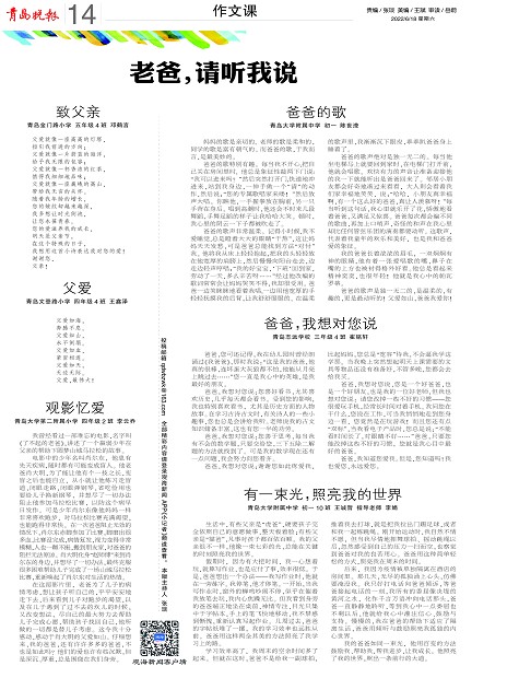 妈妈的歌是亲切的,老师的歌是柔和的,同学的歌是富有朝气的。而爸爸的歌,于我而言,是最美妙的。