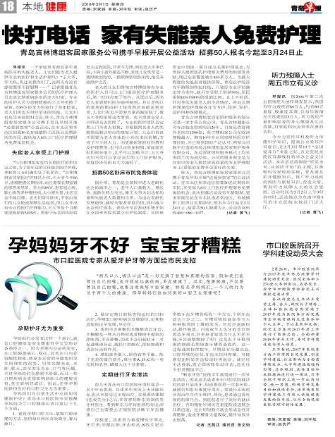 快打电话家有失能亲人免费护理孕妈妈牙不好 宝宝牙糟糕听力残障人士周五市立有义诊市口腔医院召开学科建设动员大会
