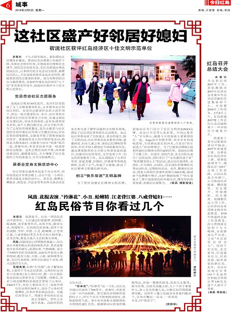本报讯 每到春节,红岛一带民俗活动丰富多彩。人们通过打鼓敲锣、扭秧歌、踩高跷、划旱船等形式,庆祝丰收,歌颂生活,祝福明天。红岛的民俗表演,流传下来的高跷、旱驴、旱船、小丑、蛤蜊精、江老背江婆、八戒背媳妇等艺术形式和人物形象,活灵活现,都是当地人生活的真实再现。