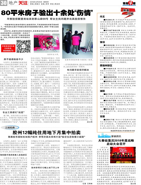 此外,胶州市国土资源局近日发布公告,出让胶州区域内12幅纯住用地。公告显示,地块用地面积共57.9万平方米,约合868.6亩,容积率统一为3.0,总建面约173.7万平方米,平均楼板价1010元/平方米,12幅纯住地块搭配出让,执行“限地价竞自持租赁住房建筑面积”。该土地拍卖将于4月17日进行。