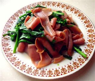 韭菜炒海肠是地道的胶东名菜。韭菜和海肠经过炒制,口感脆爽、鲜美无比。用料:海肠1000克、韭菜100克、盐10克、植物油30克、醋5克、胡椒粉2克、淀粉5克、葱、姜、香油制作方法: