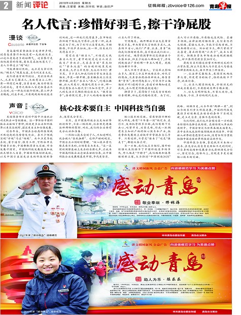 名人代言:珍惜好羽毛,擦干净屁股核心技术要自主 中国科技当自强