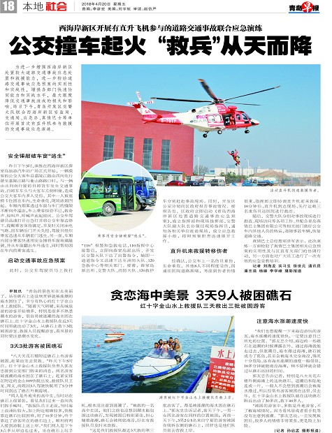 公交撞车起火“救兵”从天而降