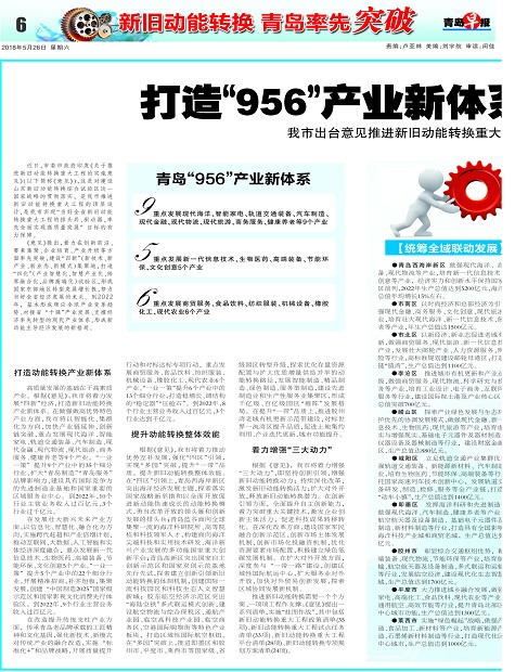 根据《意见》,我市将着力推动优势互补发展,强化“四区”引领,实现“多园”突破,提升“一带”品质,提升新旧动能转换整体效能。在“四区”引领上,青岛西海岸新区突出海洋经济发展主题,探索落实国家战略新举措和以全面开放促进新动能快速成长的动能转换模式,勇当改革开放的领头雁和创新发展的排头兵;青岛蓝谷面向全球集聚一流的海洋科研院所、高等院校和科技领军人才,构建面向海洋尖端科技和实用技术研发、海洋新兴产业发展的多功能国家重大创新平台;青岛高新区突出国家自主创新示范区和国家双创示范基地先行先试,探索建立创新引领新旧动能转换的体制机制,创建国际一流科技园区和科技生态人文智慧新城;胶东临空经济示范区突出“海陆空铁”多式联运模式创新,建设航空物流与综合保税区、通航产业园、临空高科技产业园、临空商务区、空港国际购物街等特色产业板块,打造区域性国际航空枢纽。在“多园”突破上,推进即墨区和胶州市、平度市、莱西市等国家级、省级园区转型升级,探索优化存量资源配置与扩大优质增量供给并举的动能转换路径,发展智能制造、精品制造、绿色制造、服务型制造,建设先进制造业和生产性服务业集聚区,形成千亿级、百亿级园区“雁阵”发展格局。在提升“一带”品质上,推进胶州湾老城有机更新示范带建设,对标世界一流湾区提升品质,促进土地集约利用、产业迭代更新、城市功能提升。