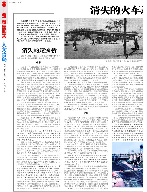 定安桥自1924年10月11日竣工,到1942年2月被列为危桥停用,同年8月拆除,共存在了近18个春秋。