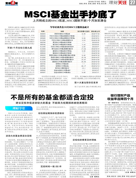 MSCI基金出手抄底了不是所有的基金都适合定投银行理财产品收益率连降四个月