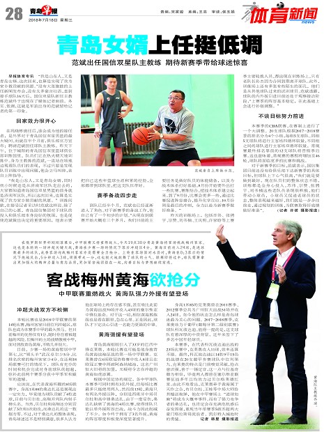 青岛女婿上任挺低调客战梅州黄海欲抢分