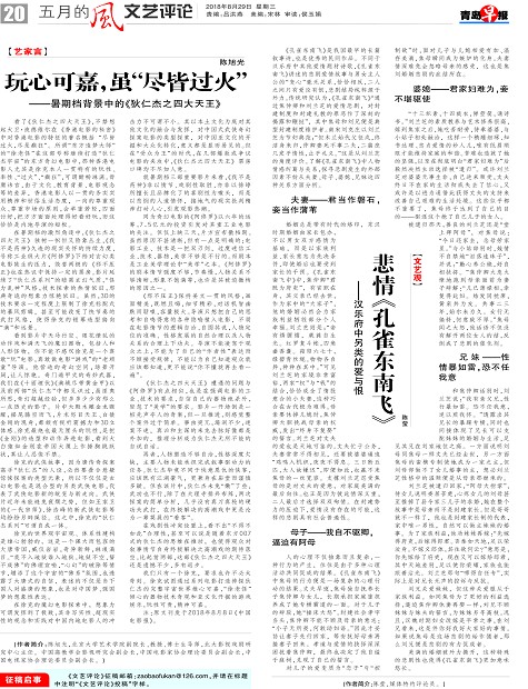 对儿子的爱变质为“恋子”与“控制欲”时,面对儿子与儿媳相爱有加、温存美满,焦母瞬间成为嫉妒的化身。夫妻情深难免会忽略母亲的感受,这也是焦刘婚姻悲剧的症结所在。