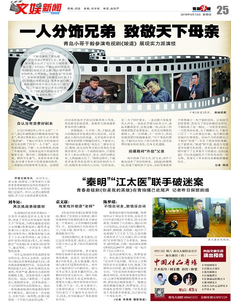 于毅在演唱了青岛城市宣传曲《青岛》之后,更多家乡观众认识了这位实力派的青岛小哥。 9月5日,于毅主演的传奇大戏《娘道》登陆北京卫视,他在剧中首次分饰两角,大秀演技。该剧也是“传奇剧王”导演郭靖宇继 《铁梨花》《红娘子》《打狗棍》《勇敢的心》等多部高口碑、高收视的传奇大戏之后的又一部力作。于毅在接受记者采访时表示,“《娘道》是献给全天下母亲的礼物。 ”