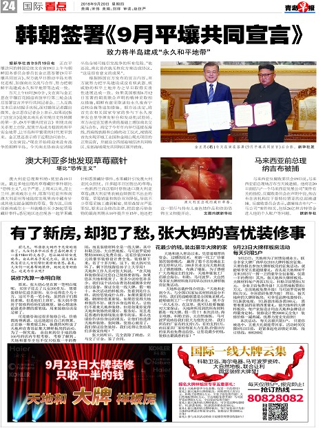 韩朝签署《9月平壤共同宣言》