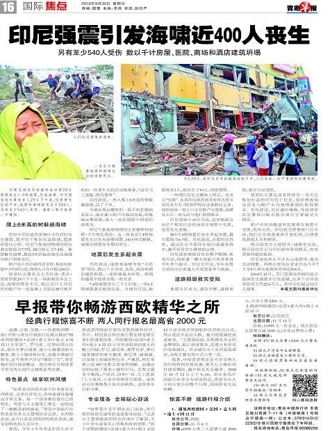 印尼强震引发海啸近400人丧生