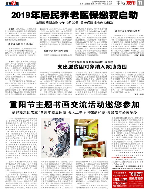 2019年居民养老医保缴费启动支出型贫困对象纳入救助范围重阳节主题书画交流活动邀您参加