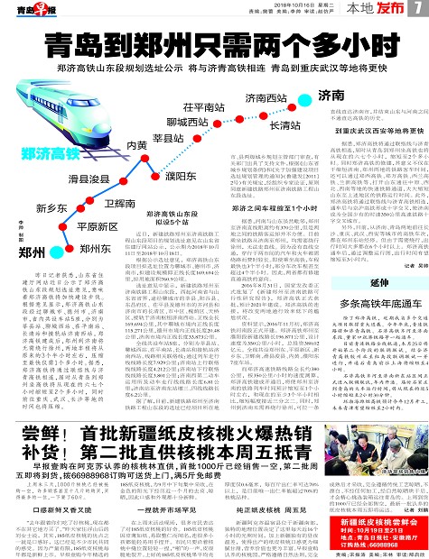 昨日记者获悉,山东省住建厅网站近日公示了郑济高铁山东段规划选址意见,意味着郑济高铁将加快建设步伐。根据意见显示,郑济高铁山东段经过聊城市、德州市、济南市,省内共设车站5座,分别为莘县站、聊城西站、茌平南站、长清站和接轨站济南西站。郑济高铁建成后,郑州到济南将无需绕行徐州,两地车程将从原来的3个半小时左右,压缩至最快仅需1个多小时。据悉,郑济高铁将通过联络线与济青高铁相连,届时从青岛到郑州坐高铁将从现在的六七个小时缩短至2个多小时,同时前往重庆、武汉、长沙等地的时间也将压缩。