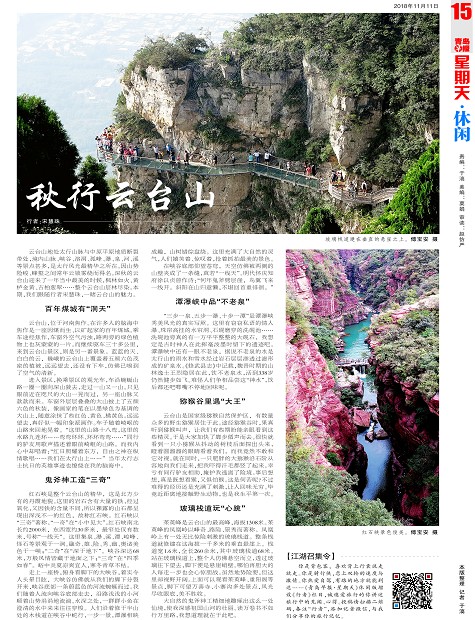 云台山地处太行山脉与中原平原地质断裂带处,境内山脉、峡谷、溶洞、孤峰、瀑、泉、河、溪等景点甚多,是太行风光最精华之所在。因山势险峻、峰壑之间常年云锁雾绕而得名。深秋的云台山迎来了一年当中最美的时候,枫林如火、黄栌金黄、古柏葱翠……整个云台山层林尽染。本期,我们跟随行者宋慧珠,一睹云台山的魅力。