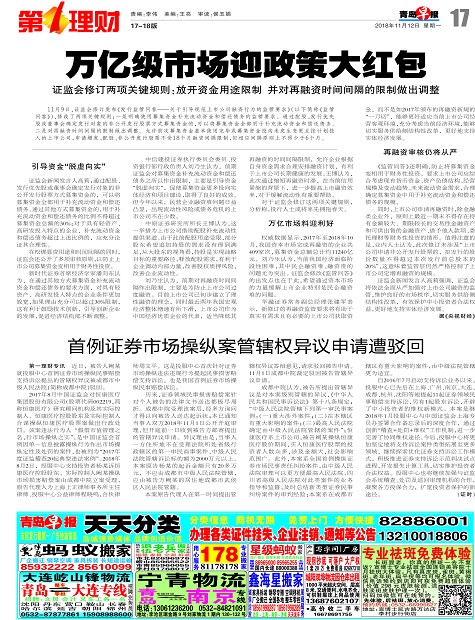 首例证券市场操纵案管辖权异议申请遭驳回