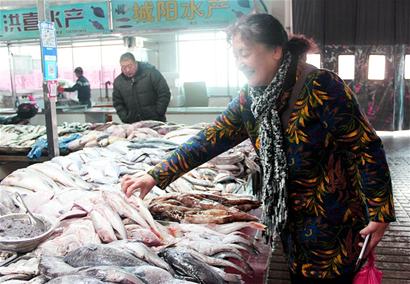 上午10时许,城阳海鲜商城内人来人往,不少市民前来购买海货。八爪鱼、扇贝、海螺、鲅鱼……尽管正处寒冬时节,但各摊位海产品种类依然齐全,且大部分为新鲜捕捞的。尤其在海鱼摊位,鲅鱼、刀鱼、鲳鱼、黄花……大的小的,吸引了大部分市民的目光。在众多海鱼中,体色红润、身材苗条、个头偏小的红头鱼夹杂其中,显得有些局促。