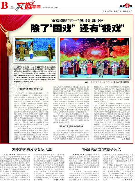 此外,五一前后上演的剧目还包括4月29日、30日在四方剧院演出的现代京剧《沙家浜》、5月1日在李沧剧院演出的 《庆祝建国70周年五一劳动节京剧晚会》、5月2日在李沧剧院演出的现代京剧《沙家浜》等。