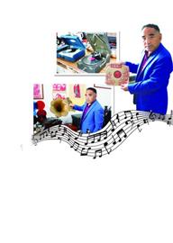 ◆曹景才展示有近百年历史的唱片。