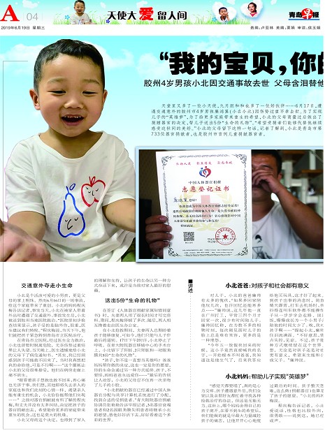 “眼看着孩子想救也救不回来,再心痛也无济于事。我们想,其他即将失去亲人的家庭也和我们此刻的心情一样,渴望亲人能有重生的机会,小北恰恰能帮他们实现……”之前对器官捐献就有所了解的程庆梅,和丈夫并没有太多纠结,决定把孩子的器官捐献出去,希望能给更多的家庭带来重生的机会,这也是莫大的机缘。