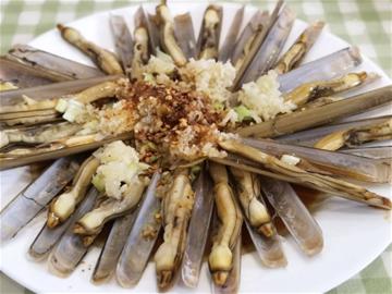 中国人常说“不时不食”,吃海鲜也是一样。蛏子虽然一年四季都有,但秋天的蛏子个头大且肉质鲜嫩、肥厚,吃起来还有一股鲜甜的味道。蛏子的吃法有很多种,家庭做法一般将蛏子煮熟直接蘸料汁吃,也可以扒出肉,与黄瓜、大葱凉拌。蛏子汤则是做疙瘩汤和做面卤的上好汤底。街边大排档,以油泼蛏子、铁板蛏子、蛏子炒韭菜为招牌菜。油泼蛏子,将煮熟的蛏子摆盘,撒上蒜蓉、辣椒末,倒上味极鲜,浇一勺热油爆香。伴着滋啦滋啦的响油声,闻着扑鼻的香味,胃口也被吊了起来。铁板蛏子,是在铁板上铺上厚厚的精盐,将铁板烧烫,再将新鲜饱满的蛏子一个挨着一个埋入盐中。靠着盐的温度和咸度做出来的蛏子肉嫩入味。蛏子炒韭菜考验的则是厨师对火候的把握,锅内放油爆香姜丝后倒入韭菜段翻炒,待韭菜炒出香味后倒入焯过水的蛏子肉,加调味品翻炒出锅即可。