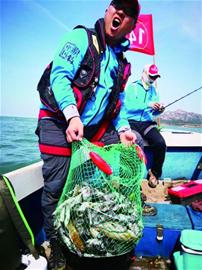 “海钓选好点,胜过抛千竿。”“钓鱼选海流,定会大丰收。 ”“障碍处找鱼窝,平坦地选海沟。”……这些在海钓爱好者嘴里时常跳出来的花样俗语,流露着海钓浓厚的吸引力。在海上漂了三四天的“大鸟”,是海钓圈内有名的玩家,这次同行十几人,包了一艘正规专业渔船,往来威海石岛和韩国群山市,又是满载而归。带鱼、鲅鱼、黑头……数十斤的收获让他们笑得合不拢嘴。
