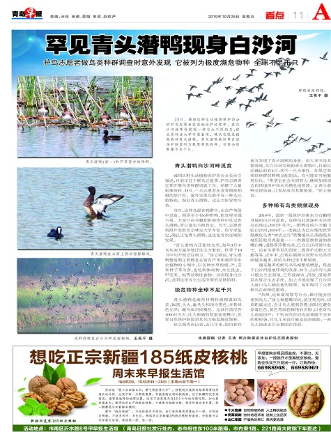 罕见青头潜鸭现身白沙河