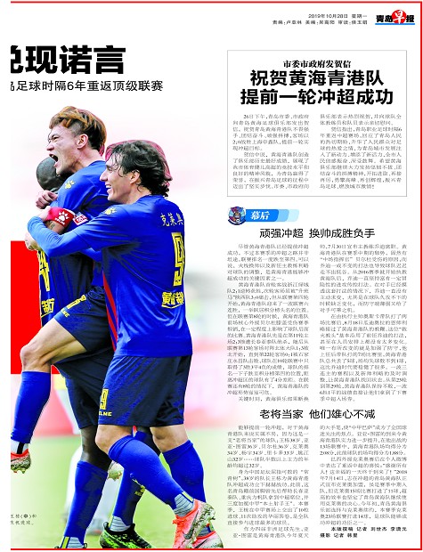 祝贺黄海青港队提前一轮冲超成功