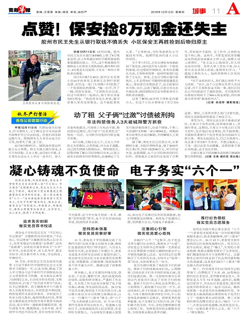 点赞!保安捡8万现金还失主动了粗父子俩“过激”讨债被刑拘凝心铸魂不负使命 电子务实“六个一”