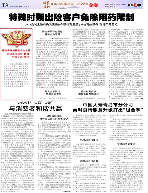 与消费者和谐共赢特殊时期出险客户免除用药限制    中国人寿青岛市分公司面对疫情服务升级打出“组合拳”