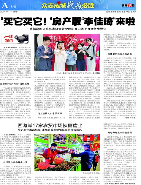 早报3月16日讯 百姓一日三餐离不开“菜篮子”,安稳有序的生活更离不开农贸市场、大型商超的生活必需品供给。疫情期间,青岛西海岸新区商务流通领域23处重点商超、综合体安全稳定运行,满足了市民的日常需求。近日,与市民生活密切相关的农贸市场也陆续恢复营业。记者走访发现,严密的防控措施下农贸市场菜品新鲜,供应充足,价格亲民。“目前西海岸25家农贸市场已有17家恢复营业!”西海岸新区市场监管局市场科负责人李丽艳说道。