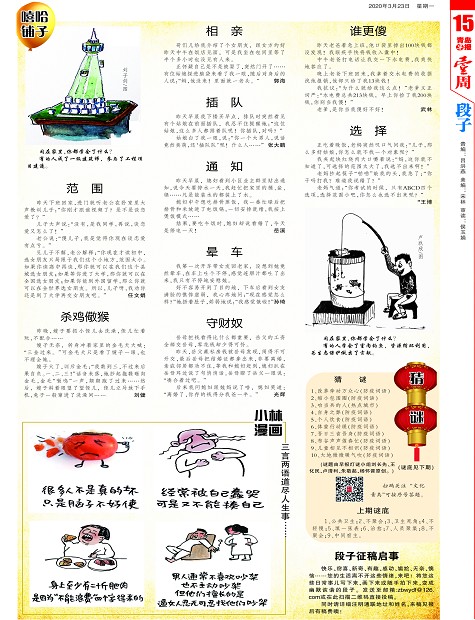(谜题由早报灯谜小组刘长先、王化民、卢清利、朱敬起、杨怀晋原创。 )(谜底见下期)
