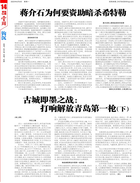 最后一点,蒋介石与若干反纳粹骨干人员的友好关系,也可能是促成他愿意资助他们推翻希特勒的动机之一。德国反纳粹力量的三个代表性人物克兰、沙赫特、托马斯,都曾热心帮助过中国。所以,我们不难推测,蒋介石出于对这些人的感激之情,从而愿意资助他们从事暗杀希特勒的行动。