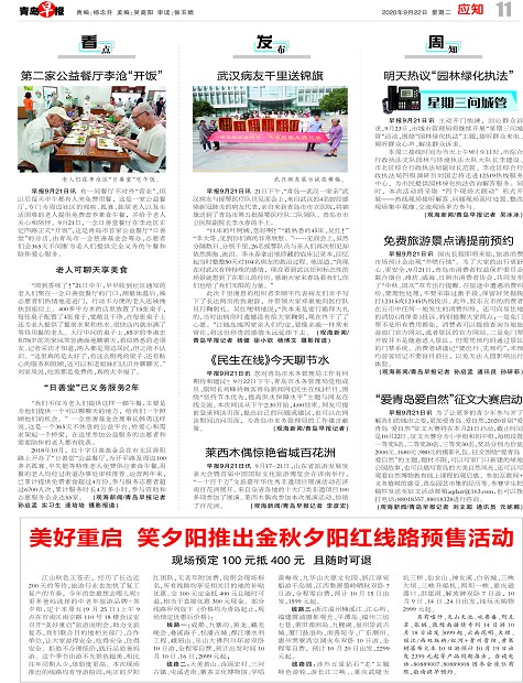 江山秋色正苍茫,经历了长达近200天的等待,旅游行业也加快了复工复产的节奏,今年的您最想去哪儿呢?更多爸妈选择的中老年旅游品牌-笑夕阳,定于本周五(9月25日)上午9点在市南区南京路110号18楼会议室召开“美好重启”旅游说明会。助力文旅复苏,我们联合目的地相关部门、合作单位,让大家游得安全、吃得安全、住得安全。拒绝不合理低价,践行品质爸妈游。这个季节出游不光景色超美,相比往年同期人少,体验度更高。本次现场推出的线路均有导游陪同,纯正的夕阳红团队,无老年附加费,说明会现场报名,所有线路均享受相关目的地的补贴优惠。交100元定金抵400元且随时可退,相当于直接优惠300元现金。部分线路所列如下 (价格均为青岛起止,现场预定优惠后价格):