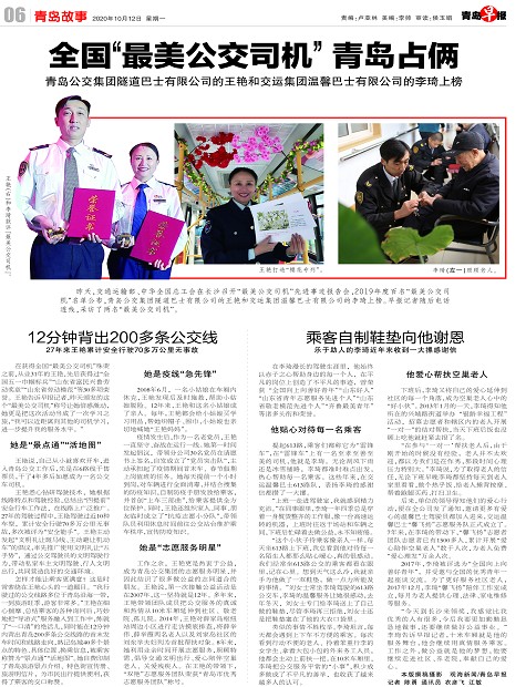 全国“最美公交司机”青岛占俩