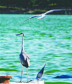 国家级胶州少海湿地公园属于省级大沽河旅游区内,它紧靠大沽河入海口西侧,经过治理,湿地植被恢复茂盛,植被生长吸引了众多昆虫鱼虾,进而吸引了更多鸟儿前来,一个良好生物链已经形成。秋风生凉意,晨昏间,在湿地公园内,只见苍鹭悠然伫立,成群结队的海鸥,时而翱翔潜底。