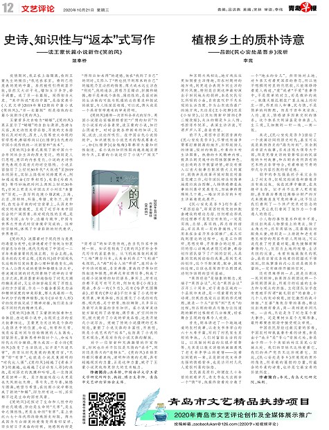 王蒙曾多次自喻为“蝴蝶”,《笑的风》真正显示了“蝴蝶”的自由与潇洒,悠游与从容,其史诗性美学品格、开放的文本结构以及对时代、历史、人性等宏大命题的哲学思考,都堪称向以《红楼梦》为代表的中国小说传统的一次回望和“返本”。
