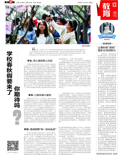 据悉,这两年全国两会上,均有人大代表就落实大中小学春秋假提出建议,大众也普遍抱有期待心态。2019年教育部在回复中表示,由于学校假期调整涉及社会、家庭等方方面面,在全国范围内全面推广实施春秋假,还需在总结各地实践经验的基础上,进一步加强研究,深入评估。此次教育部公布的答复中,也强调了春秋假应结合实际做出安排,体现了对落实春秋假积极而审慎的态度。换言之,让春秋假走进现实,还需多方共同努力。