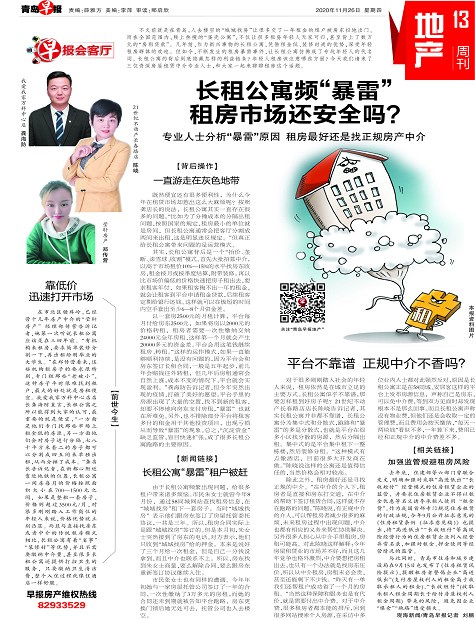 不久前就是在青岛,人去楼空的“城城找房”让很多交了一年租金的租户被房东扫地出门。而在全国范围内,频上热搜的“蛋壳公寓”,不仅让很多租房年轻人无家可归,甚至背上了数万元的“房租贷款”。几年前,作为新兴事物的长租公寓,凭借租金低、装修时尚的优势,深受年轻租房群体的欢迎。但如今,不断发生的租房暴雷事件,让长租公寓仿佛成了专坑年轻人的代名词。长租公寓的背后到底隐藏怎样的利益链条?年轻人租房该注意哪些方面?今天我们请来了三位资深房屋租赁中介专业人士,和大家一起来聊聊租房这个话题。