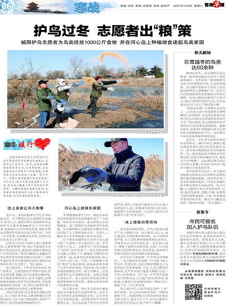 护鸟过冬 志愿者出“粮”策在青越冬的鸟类达60余种市民可报名加入护鸟队伍