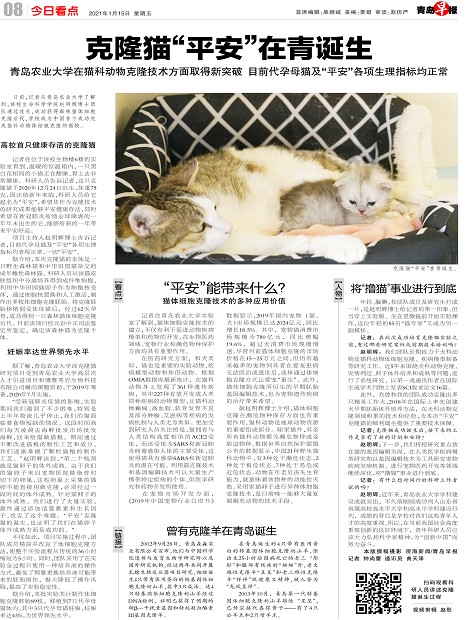 克隆猫“平安”在青诞生