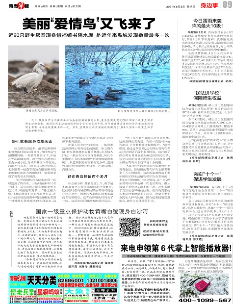 国家一级重点保护动物黄嘴白鹭现身白沙河