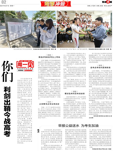 今天是2021年高考的首个考试日,山东约有55.51万名考生奔赴考场,青岛则将有37090名考生在10个考区的32个考点开考。考前一天熟悉考点周边环境,是考生和家长要做的“功课”。昨天,不少考生在家长的陪同下来到考点,提前熟悉路线。
