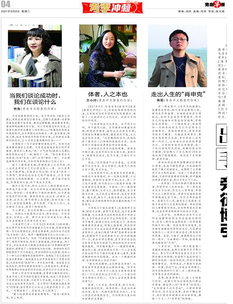 今年的高考作文以毛泽东在《新青年》发表的《体育之研究》一文为背景资料,出乎很多考生的意料。那么,你想知道作家和老师面对这样的题目会怎么做吗?早报特别邀请了3位岛城名家和3位语文老师试写高考作文。