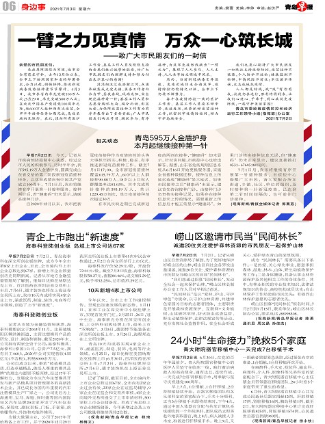 一臂之力见真情 万众一心筑长城青企上市跑出“新速度”崂山区邀请市民当“民间林长”24小时“生命接力”挽救5个家庭