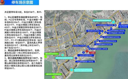 另外,如果上述停车场出现饱和,市民游客可根据引导前往漳江路、丹霞山路、金山路两侧,连三岛路与南岛小镇南北路以西2公里北侧单排应急停车位停车。