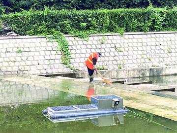 据介绍,节能型水面漂浮物收集器水面清洁能力为200m2/h;采用太阳能电池供电,无需外接电源,每日阳光照射2小时以上即可保证设备24小时连续运行,内置蓄电池充满后可保证设备连续3个阴雨天正常连续运行。