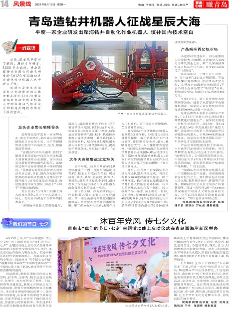 青岛造钻井机器人征战星辰大海沐百年党风 传七夕文化
