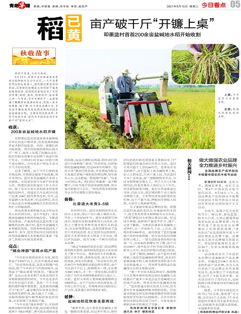 稻已黄 亩产破千斤“开镰上桌”